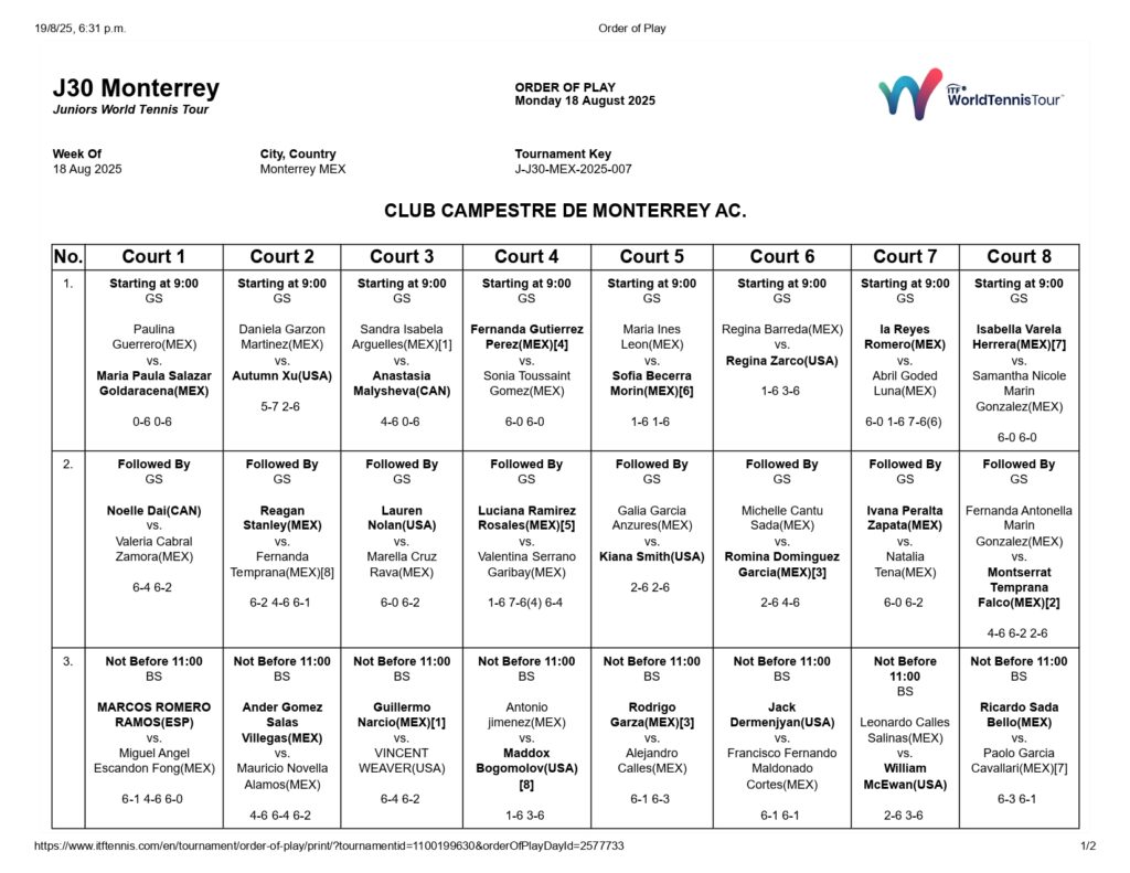 Nuevo León inicia un par de torneos ITF que abre oportunidades a nuestros tenistas de ganar puntaje ITF en una justa que aparecerán rivales peligrosos, mientras tanto Niccolo Magagnin ya está en octavos.