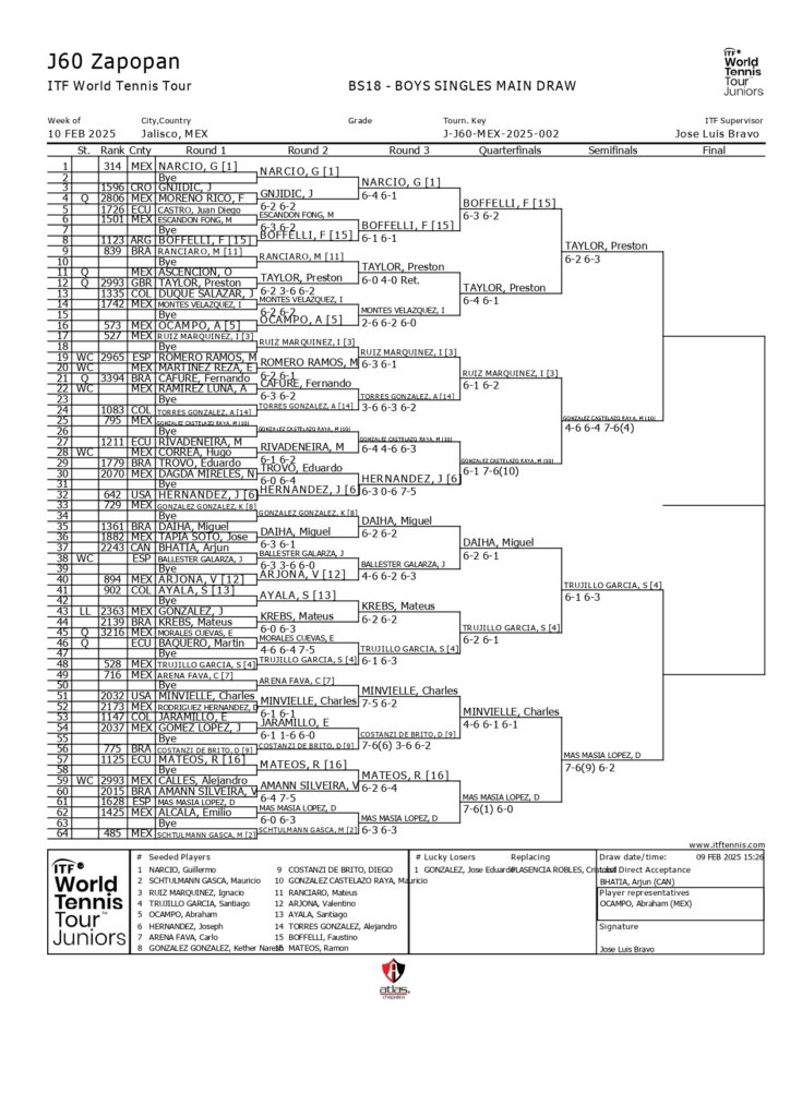 PorrdadminAlejandro Velázquez, se quedó en la segunda ronda del ITF de Argentina para menores de 18 años. RESULTADOS Antonin Scaff Haddad Bartos (Bra) [1] Bye Edinei Mendes De Sousa (Bra) 6-1 7-6(3) Flavio Matteoli (Arg) Martin Capdevilla (Arg) 6-2 6-4 Rodrigo Agustin Periales (Arg) Gabriel Roveri Sidney (Bra) [10] …